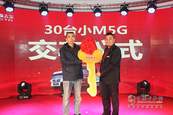 張輝總經(jīng)理向楊旭昌交付金鑰匙