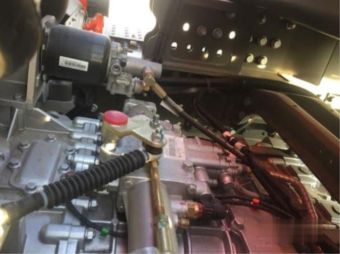 與發動機匹配的是中國重汽16擋變速箱,范說檔位越多,動力輸出就越平順,銜接速比就越小,換擋時不會感到有頓挫感,也不會出現那種11檔動力用不完,12檔不夠用的情況,面對爬坡、超車等工況,都能夠非常從容地應對,特別適合跑青藏線。