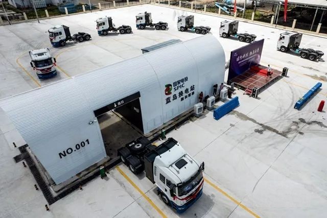 漢馬科技還首創了充換電一體化運營模式,解決了電動重卡續航短、補能時間長的短板,僅需3-5分鐘即可完成車輛電池更換,快速投入運營,大大提高了車輛出勤率,并具備了24小時不間斷運營能力。而針對暫時無法進行換電站建設的區域,漢馬科技還提供了“1小時滿電”的充電方案,打消了用戶選購電動重卡的顧慮。