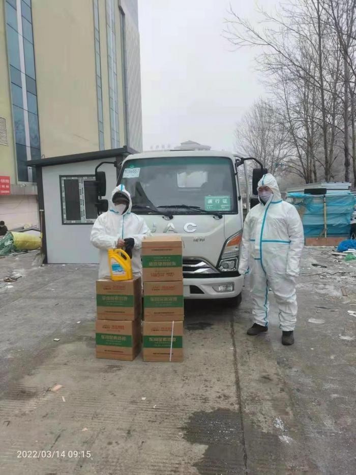 由于當(dāng)?shù)匾咔榍闆r比較緊張,車(chē)輛處于高效運(yùn)行的狀態(tài),車(chē)用尿素缺乏。3月13日,服務(wù)站又送去多箱尿素和防凍液,表示對(duì)在防疫一線工作者的支持。