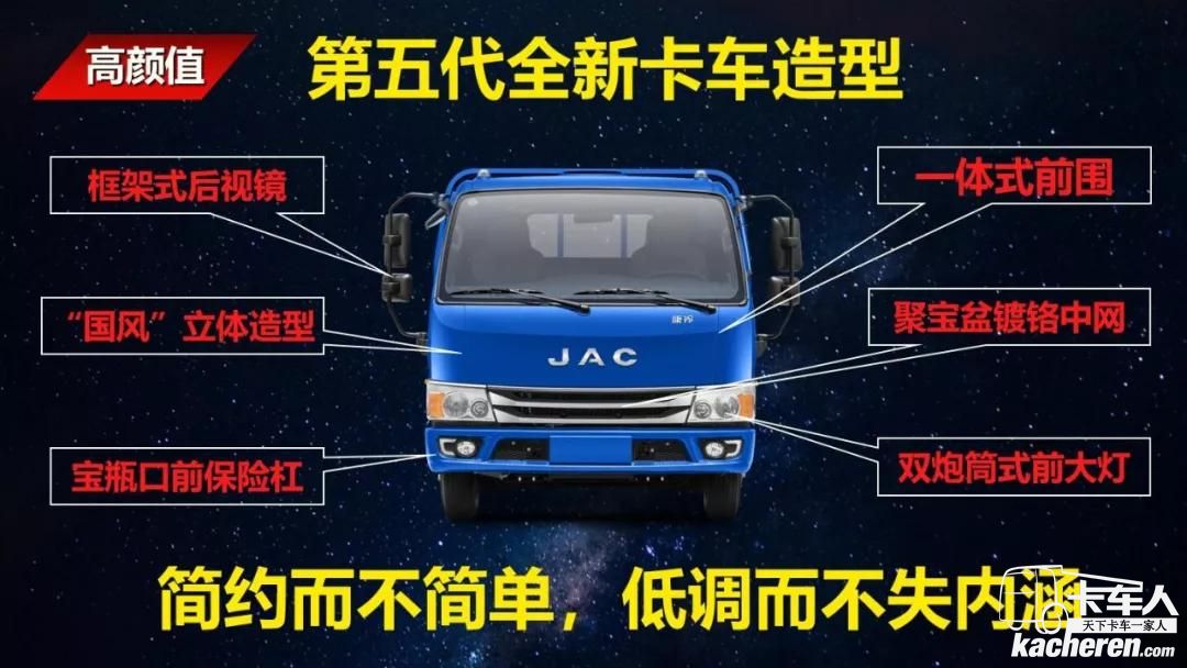 國五輕卡新選擇——康鈴H5,擁有簡而不凡 · 大氣俊朗的外觀,流線型設(shè)計,做工精良!采用一體式前圍與聚寶盆鍍鉻中網(wǎng)相協(xié)調(diào),散發(fā)出無與倫比的動感張力,在人群中艷壓四方。